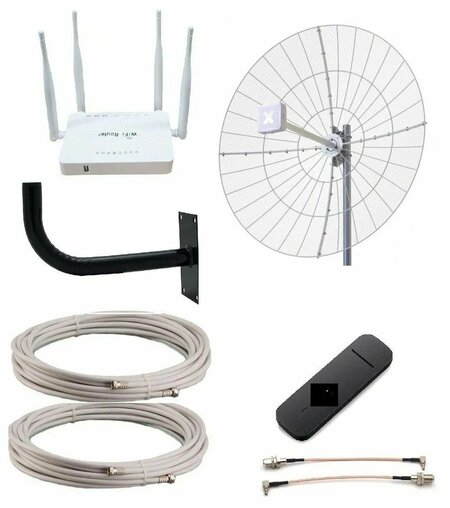 Готовый комплект для усиления мобильного 3G 4G LTE интернета на даче, за городом с самой мощной 2G 3G 4G/LTE антенной Antex Vika-27f mimo 27dBi