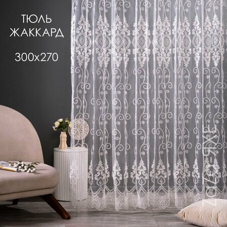Предлагаем вашему вниманию кружевной жаккардовый тюль с узорчатым рисунком. Это тонкое полупрозрачное полотно украшено вензелями с мягким матовым блеском, создающими изысканные узоры и завитки. Благодаря уникальной технике кружевной вышивки, тюль обладает объемным рисунком, а использование велюровой нити придает декоративным элементам бархатную текстуру, приятную на ощупь. Плотная вышивка "Паутинка" выполнена матовыми нитями с небольшим добавлением люрекса, что придает легкий блеск изделиям. Эта готовая занавеска прекрасно подойдет для гостиной, спальни, кухни или детской комнаты. Она изготовлена из легкого и прочного полиэстера, не мнется и не требует специального ухода. Плотная жаккардовая вышивка выполнена с добавлением люрексных нитей. Ткань для тюля произведена в Турции и пошита единым полотном на прозрачной шторной ленте из органзы с одним рядом карманов для карниза-трубы. Низ занавески обладает утяжелителем волнообразной формы. На ощупь она нежная, мягкая и пластичная, хорошо драпируется в прямые и закругленные складки. Тюль можно стирать в машинке на деликатном режиме при температуре 30 градусов. После стирки глажение не требуется, достаточно повесить занавеску, и все складки расправятся под собственной тяжестью. Легкость и гладкость материала способствуют хорошей вентиляции и легкой драпировке благодаря специальным шнуркам. Эти ажурные занавески гармонично впишутся в любой интерьер, сочетаясь как с темными, так и со светлыми оттенками. Они украсят зал, кабинет, детскую комнату и спальню родителей. На даче длинный кружевной тюль идеально подходит для летней беседки или веранды, где можно наслаждаться видами на природу. В нашем магазине вы также найдете другие размеры тюля.
