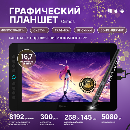 Создавайте свои шедевры с удовольствием! Представляем вам Графический планшет Qiimos - инновационное решение для вашего творчества. Этот графический планшет объединяет в себе передовые технологии и интуитивное управление, чтобы ваше искусство расцветало. Это не просто планшет, а настоящий графический арт-инструмент. Усиленное проводное подключение обеспечивает стабильную и надежную передачу данных между вами и вашим компьютером. Невероятная Чувствительность: 8192 уровня чувствительности нажатия дарит вам абсолютный контроль над линиями, текстурой и цветами. С точностью пера 0.11 мм каждая линия, каждая крошечная деталь будет безупречной. Ваши идеи становятся реальностью. Этот мультиплатформенный инструмент совместим с Windows, Mac OS, давая вам свободу выбора. Встроенный экран, горячие клавиши и даже держатель для пера обеспечивают максимальный комфорт и эффективность в работе. Улучшите свои навыки искусства, дизайна или анимации с этим мощным дисплеем. Пусть ваше творчество оживет на экране !