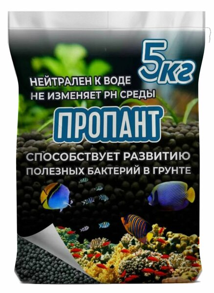 Грунт для аквариума изготовлен на базе пропанта. Алюмосиликатный пропант для аквариумистики и террариумистики. Химическая инертность и нейтральный pH позволяют назвать пропант одним из лучших грунтов для аквариума. Идеально подойдет для множества рыб и креветок. В их число входят донные рыбы, а также рыбы, любящие зарываться в грунт, потому что пропант не имеет острых углов. В аквариумистику пропант пришёл из нефтедобывающей промышленности. Инертность по отношению к растворённым в воде солям и газам позволяет использовать его в качестве нейтрального грунта для аквариумов. Пропант это гранулообразный материал полученный путем высокотемпературного обжига специального фракционированного глинозема. 100 % натуральный продукт. Идеально подходит как декор для аквариума в качестве грунта. Фракция 1,5-2 мм. Аквагрунт не имеет острых углов, не изменяет PH среды, имеет высокие фильтрационные свойства. Способствует развитию полезных бактерий в грунте, развитию корневой системы растений, подходит для почвопокровных. Применение: морские и пресноводные аквариумы, террариумы. Алюмосиликатный пропант имеет высокую плотность, но при этом сыпучий и не слёживается. Из этого следует, что корни растений могут свободно проникать между его частицами и закрепляться среди них корнями. Размер гранул достаточно маленький, чтобы даже растения с короткой корневой системой хорошо прижились в этом субстрате. В сухом виде - темно-серого цвета, в мокром - серо-коричневого. Как рассчитать необходимое количество пропанта: умножаем длину аквариума на ширину результат умножаем на требуемую высоту грунта, полученный результат умножаем на 1,84 (коэффициент плотности) и делим на 1000. Коэффициент 1,84 взят с учётом именно нашего пропанта. Грунт идеально подойдет в любой аквариум для рыбок и террариум, как декор для аквариума. В последнее время среди аквариумистов всё большую популярность приобретает гранулированный нейтральный грунт проппант.