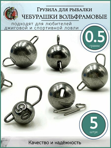 Груза для рыбалки - разборные вольфрамовые. Вольфрам является самым популярным материалом для изготовления грузил. Вольфрамовые чебурашки по сравнению с грузами из свинца имеют ряд важных преимуществ: один из самых неоспоримых плюсов вольфрама является его повышенная плотность, по сравнению с свинцом. Плотность свинца составляет 11,3415 г/см³, плотность вольфрама - 19,25 г/см³. Вольфрамовая разборная чебурашка высокого качества с содержанием вольфрама не менее 98%. Ушко - застежка изготовлено из нагартованной нержавеющей проволоки диаметром 0,45мм. Груз имеет компактные размеры при максимальном весе. Миниатюрный монтаж в свою очередь дает меньшее сопротивление в воде, компактное и незаметное грузило в меньшей степени отпугивает рыбу и как результат даёт больше поклёвок. Дальность заброса, которая превосходит заброс со свинцовым грузилом, а также чувствительность проводки - залог успеха при джиговой ловле. При ловле на водоёме с каменистым дном вольфрамовые чебурашки могут стать самостоятельным фактором привлечения рыбы - своим звонким ударом о грунт грузило может привлечь хищника с большого расстояния. На каждом изделии нанесена маркировка веса в граммах, а за счёт твёрдости вольфрама - груз не мнётся. Все касания дна гораздо лучше и отчетливее передаются на вершинку Вашего удилища. Набор грузил чебурашка разборная вольфрамовая. Данный груз получил широкое распространение при джиговой ловле. Оснащается офсетным крючком, который Вы также можете приобрести у нас /размеры крючков подходят для ловли как микроджигом, начиная от крючка номер 6, так и для ловли крупной рыбы, на данный момент максимальный размер крючка 6/0. Выбор крючка зависит от размера приманок.