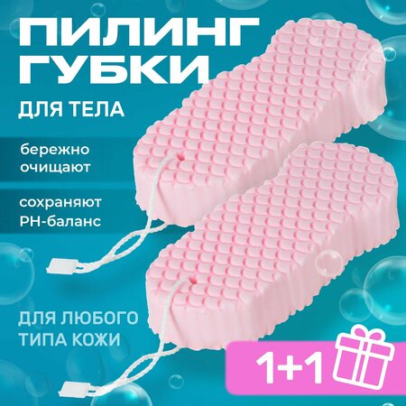 Губка пилинг для тела REVOLUT, Мягкая мочалка скрабер для пилинга, розовая, 2 шт