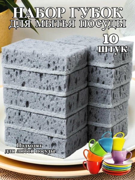 Губки, крупнопористые, серые, для посуды, набор 10шт, Россия