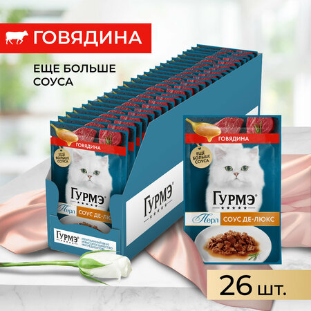 Влажный корм для кошек ГУРМЭ® Перл Соус Де-люкс с говядиной в соусе 75 г x 26 шт