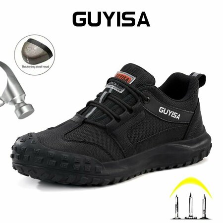 Кроссовки имеют черный цвет и подходят для мужчин. Они не являются водонепроницаемыми, но благодаря антипрокольной стельке и защите от проколов, они обеспечивают надежную защиту ног от возможных повреждений.