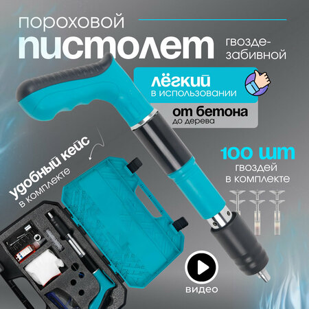 Гвоздезабивной пистолет с набором принадлежностей и 100 круглыми гвоздями, Zur-Kibet