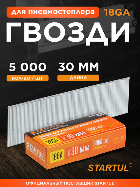 Гвозди для пневмопистолета нейлера 30 мм тип 18GA 5000 штук STARTUL Profi (ST4515-30)