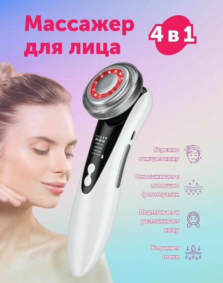 Теплый массаж (RF - Лифтинг): теплый режим может улучшить кровообращение, улучшить упругость и эластичность кожи, предотвратить старение и улучшить разглаживание морщин. Сделает кожу ярче и привлекательнее. Глубокое очищение: с помощью ионной функции грязь с лица легко удалить и тщательно очистить поры. Когда ваше лицо действительно чистое, ионная функция также может помочь вам более эффективно впитывать крем, эссенцию, лосьон и другие питательные вещества. Содействовать абсорбции: высокочастотная вибрация может не только улучшить метаболизм клеток кожи, но также обновить клетки кожи, способствовать регенерации коллагена, избавиться от меланина и подтянуть кожу, чтобы сделать вашу кожу упругой, гладкой и нежной ПРОТИВОПОКАЗАНИЯ: Не применять во время беременности, лактации, а также в период восстановления после операций , опухоль щитовидной железы и другие злокачественные опухоли. Травмы, порезы, ожоги, ссадины на коже в области действия прибора, включая недавно перенесенные пластические операции. Склонность к аллергическим реакциям, очень чувствительная кожа. Заболевания кожи и соединительной ткани, инфекционные заболевания.