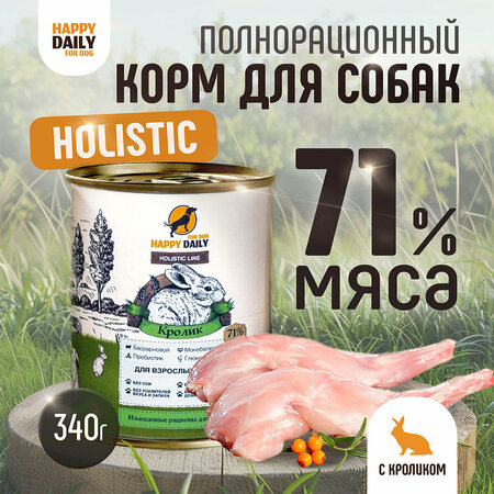 Влажный корм для собак Happy Daily Holistic line с кроликом 340 г