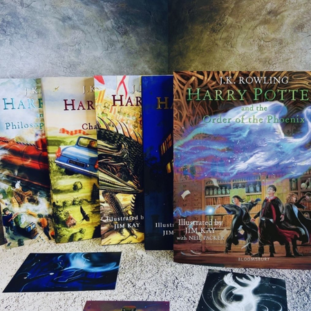 Набор английских книг "Harry Potter set 5 Books Jim Kay". Harry Potter by J.K. Rowling, Jim Kay издательство Bloomsbury Гарри Поттер иллюстратор Джим Кей Коллекционное издание Гарри Поттера c невероятными иллюстрациями Джима Кея от издательства Bloomsbury. Эта серия - роскошный подарок для фанатов Поттера! Это прекрасное введение в серию о Гарри Поттере и впечатляющий подарок как для новых читателей, так и для постоянных поклонников. Набор содержит первые пять книг в крупномасштабных изданиях, великолепно иллюстрированных в полном цвете знаменитым художником Джим Кей. Эти издания приятно читать, поскольку они содержат страницы большого размера, цветные иллюстрации и закладки в виде ленты в каждом томе, а также каждый том бережно обёрнут в невероятно яркую красочную суперобложку c матовым покрытием, которое приятно наощупь. В набор входит пять частей: Harry Potter and the Sorcerer's Stone Harry Potter and the Chamber of Secrets Harry Potter and the Prisoner of Azkaban Harry Potter and the Goblet of Fire Harry Potter and the Order of the Phoenix + к комплекту идет один подарок (произвольно): карта мародеров, билетик на платформу, снитч или волшебная палочка Книги в твердом переплете с суперобложкой.