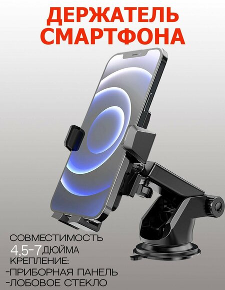 Автомобильный держатель, который при помощи присоски можно закрепить на ветровом стекле или торпеде автомобиля. Он надежно фиксируется в месте крепления и останется на месте даже при езде по неровным дорогам. Обладая большим набором возможностей настроек он позволяет максимально удобно подобрать положение смартфона для комфортного использования, чтобы, одновременно, он не мешал обзору водителя. Такая регулируемая подставка с поворотом на 360 градусов, способна выдержать мобильное устройство на базе Андройд или другой телефон массой до 1 кг. При этом покрытие автомобильного держателя максимально мягкое. Он не царапает телефон и салон авто, даже при сильных вибрациях во время движения
