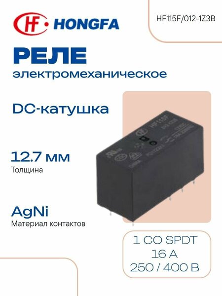 HONGFA Электромеханическое реле 12 В 16 А 250 / 400 В (AC)24 В (DC) RT II HF115F/012-1Z3B