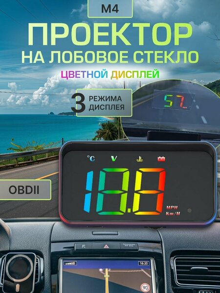 HUD STEMKID M4 / Цветная проекция скорости на лобовое стекло / Дисплей OBDII (для автомобилей с бенз. двигателем модельных рядов от 2008 года)