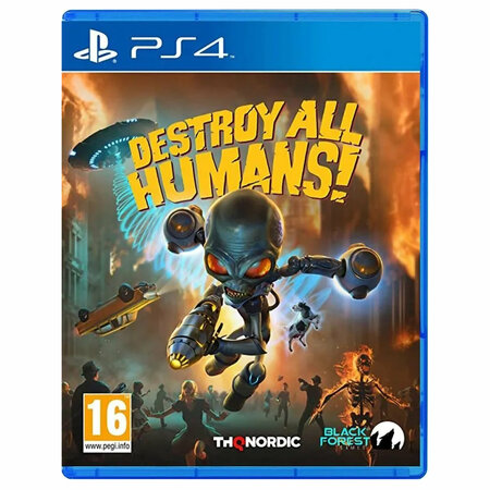 Игра для PS4: Destroy All Humans! /PS4 (Русские субтитры). Характеристики: Язык: Русские субтитры. Жанр игры: Экшн (Action), Приключения (Adventure), Шутер (Shooter). Издатель: THQ Nordic. Возрастные ограничения: 16+. Издание: Стандартное. Однопользовательский режим. Год релиза: 2020. Игра на диске. Диск новый, лицензионный, в фирменном пластиковом боксе. Ремейк оригинальной игры Destroy All Humans, выходившей в 2005 году. Культовая классика возвращается! Диалоги и юмор оригинальной игры, обновленные модели персонажей, вид от третьего лица - всё это ждёт вас в умопомрачительном приключении инопланетян на Земле. Терроризируйте землян 1950-х годов в роли злобного пришельца Крипто-137. Извлекайте их ДНК, чтобы свергнуть правительство США - как и положено в боевике про нашествие инопланетян. Аннигилируйте ничтожных людей супероружием и суперспособностями. Палите по городам из летающей тарелки. Давите, жгите, испепеляйте! Особенности игры: Встаньте на сторону зла в классическом научно-фантастическом боевике. Вооружитесь зондом Крипто и используйте его по назначению. Притворитесь гуманоидом и положите конец демократии. Бейте врагов телекинезом и швыряйте в них всем, что попадет под конечность. Нацепите реактивный ранец и исследуйте Америку 50-х. Крушите земные постройки с борта летающей тарелки. Для поклонников франшизы добавлена удаленная миссия "Зона 42".