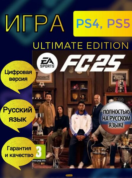 Цифровой Товар. Не Диск. Работает как на PS5 так и на PS4. EA SPORTS FC 25 Ultimate Edition Предоставляется Аккаунт. Играть и пользоваться товаром можно на своем основном аккаунте! Все достижения и ачивки попадают на ваш профиль. - Цифровая версия игры - Инструкция по установке и активации - Быстрая Поддержка наших специалистов Привилегии покупки у нас: • Игры официально приобретены в цифровом магазине PS Store • Профиль с игрой остается у вас навсегда • Русский язык в игре и полная озвучка • Игры можно загружать повторно в любое время • Легкий запуск — игра запускается в один клик без лишних настроек • Оперативная поддержка в случае любых вопросов Особенности способа активации: • Игра устанавливается с выданного профиля • Полный доступ: после загрузки играете со своего профиля или можно пользоваться на выданном аккаунте без ограничений! • Достижения, ачивки и сохранения – на вашем аккаунте Как получить игру: - После покупки на вашу электронную почту будет направлен электронный код, подтверждающий покупку - Напишите в чат с продавцом или свяжитесь по предоставленным контактам для подключения игры на консоль - Мы поможем подключить и активировать игру на вашей консоли, проконсультируем на каждом этапе подключения Условия использования Игры! - Чтобы не потерять доступ, не удаляйте профиль после активации с консоли - Не входите с других устройств кроме своей консоли Отличный подарок для ребёнка, любимого человека или взрослого на любой праздник! Наша Поддержка работает с 10:00 до 23:00 по МСК