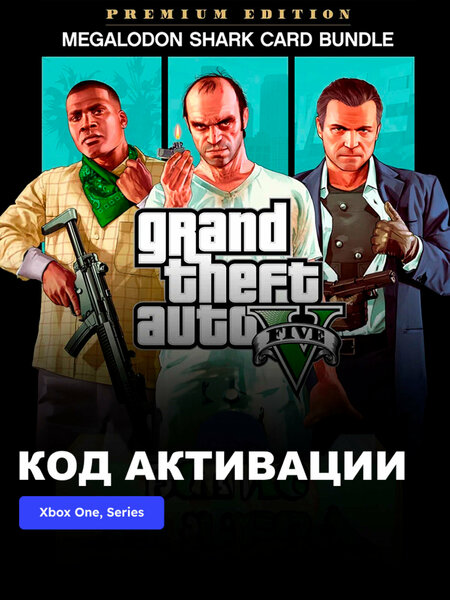 В комплект «Grand Theft Auto V: Premium Edition и платежная карта «Мегалодон» входят сюжетный режим Grand Theft Auto V, бесплатный доступ к постоянно развивающемуся миру Grand Theft Auto Online и все ранее выпущенные материалы и обновления, в том числе «Ограбление Кайо-Перико», «Казино-отель Diamond», «Ограбление казино Diamond», «Торговля оружием» и многое другое. Вы также получите стартовый набор «Преступная организация» – самый быстрый способ основать собственную криминальную империю в Grand Theft Auto Online – и платежную карту «Мегалодон» номиналом 10 000 000 долларов GTA, которые можно потратить в GTA Online. GRAND THEFT AUTO V Чтобы провести серию дерзких ограблений и выжить в большом неприветливом городе, уличному ловчиле, вышедшему на пенсию грабителю банков и вселяющему ужас психопату приходится иметь дело с самыми опасными и безумными преступниками, шоуменами и госслужащими Западного побережья. GRAND THEFT AUTO ONLINE Вас ждет открытый, постоянно развивающийся мир, где вы можете строить криминальную карьеру в Лос-Сантосе и округе Блэйн и зарабатывать деньги и авторитет самими разными способами. стартовый набор «преступная организация» Стартовый набор «Преступная организация» – самый быстрый способ для новых игроков построить собственную криминальную империю в GTA Online. В набор вошли самые интересные и популярные материалы суммарной стоимостью более 10 000 000 долларов GTA, а также денежный бонус в размере 1 000 000 долларов GTA. встаньте во главе криминальной империи Вы сможете запускать бизнес-проекты из своего офиса в западном здании Maze Bank, создавать мощное оружие в подземном бункере и штамповать фальшивые банкноты в собственной печатной мастерской. целая подборка мощных транспортных средств К вашим услугам 10 образцов высококлассных транспортных средств, в том числе суперкар, мотоциклы, Dune FAV с оружием, вертолет и раллийный автомобиль. Также вы получите в свое распоряжение недвижимость, в том числе гараж на 10 машин, где вы сможете разместить свой растущий автопарк. оружие, одежда И татуировки Вы получите доступ к укороченному гранатомету, высокоточной винтовке и укороченной винтовке, а также каскадерским костюмам, байкерским татуировкам и не только.