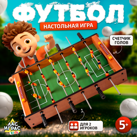 Настольная игра «Футбол» — это отличный тренажёр для оттачивания спортивных навыков. Потренируйтесь на игровом модуле, а затем отправляйтесь на улицу демонстрировать своё мастерство. В футбол играют 2 человека, у каждого из них своя команда. Задача игрока — одновременно управлять вратарём, защитниками и нападающими, стараясь забить мяч в ворота соперника. Ребёнку понравится настольный футбол. Игровой модуль выполнен из качественных экологичных материалов, безопасных для детского здоровья. Играя, малыш разовьёт координацию движений, скорость реакции, выработает спортивный азарт и волю к победе. Товар предназначен для детей старше 5 лет.