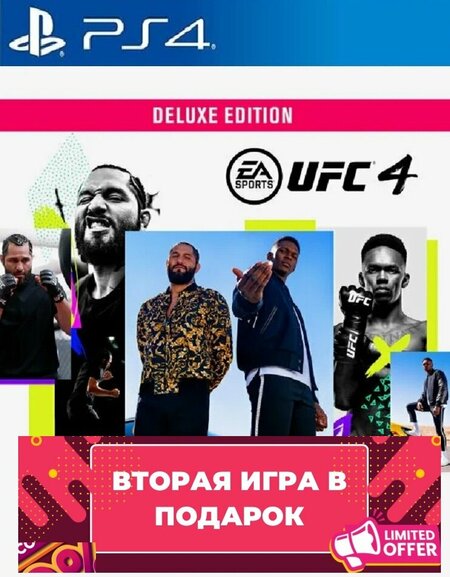 При покупке вторая игра в подарок! Доставка в течении 30 минут! Установка в пару кликов! Онлайн поддержка по любому вопросу! Честная цена без наценок! Лучшее предложение которое может быть! Каждый второй покупатель получает третью игру в подарок по акции! Выбирая цифровую версию, вы получаете множество преимуществ: Не нужно ждать доставку. Не занимает место. Обновляется намного чаще. Установка занимает всего 3 минуты. Не упустите лучшее предложение! Если у вас возникнут вопросы, наши менеджеры онлайн всегда готовы помочь. Вы получите аккаунт с уже установленными играми — основной и подарочной, и сможете сразу начать наслаждаться игровым процессом. Для корректной активации основной и подарочной игры вам необходимо связаться с нашим менеджером, мы всё сделаем за вас. Ещё раз благодарим вас за покупку! UFC 4 Deluxe Edition- это захватывающая игра, которая позволяет вам ощутить себя настоящим чемпионом смешанных единоборств. В этой игре вы сможете пройти путь от начинающего бойца до настоящей легенды, преодолевая множество трудностей и испытаний. Вы сможете выбрать своего персонажа из большого списка бойцов и отправиться в бой против соперников со всего мира. Благодаря новой системе управления игрой, вы сможете более эффективно контролировать своего бойца, используя различные приемы и комбинации ударов. Новые анимации и улучшенная графика позволяют создать более реалистичные бои, которые будут невероятно захватывающими. В UFC 4 вы также сможете создавать своего собственного бойца, выбирая его внешний вид, характеристики и стиль боя. Это позволит вам полностью вжиться в игру и создать персонажа, который будет идеально соответствовать вашим предпочтениям. Кроме того, игра предлагает множество режимов, включая карьеру, многопользовательские режимы и многое другое. Вы сможете принимать участие в настоящих турнирах и сражаться за звание чемпиона, а также соревноваться с другими игроками по сети. UFC 4 - это игра, которая подходит как для новичков, так и для опытных игроков. Она предлагает уникальный и захватывающий геймплей, красивую графику и множество интересных возможностей для сражений. Если вы ищете увлекательную игру, которая позволит вам почувствовать себя настоящим чемпионом, то UFC 4 - это игра, которую вы обязательно должны попробовать! запросы по которым нас можно найти. для playstation 4, диски для playstation 5, игры на playstation 4 на русском, для playstation 5, подписка на playstation 4, игры на playstation 4 диск на русском, playstation 5 диски, игры на playstation 4 диски, игра playstation 5, подписка playstation 5 deluxe.