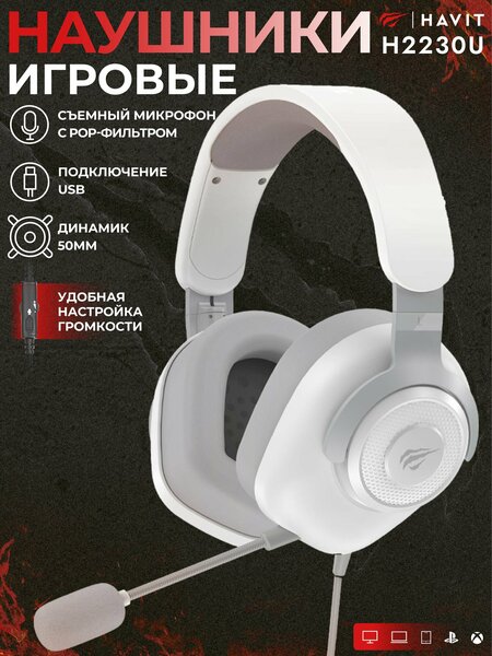 Игровая гарнитура Havit H2230U: комфорт и функциональность Полноразмерные наушники Havit H2230U обеспечивают качественное звучание и комфорт во время игры. Конструкция гарнитуры выполнена в белом цвете, что делает ее стильной и привлекательной. Особенности и функциональность Одной из ключевых особенностей данной модели является голосовой набор. Это позволяет вам общаться с друзьями и командой без необходимости отвлекаться от игры. Мягкие амбушюры гарантируют комфортное использование гарнитуры в течение длительного времени. Они обеспечивают отличную звукоизоляцию, что позволяет полностью погрузиться в игровой процесс. Функция отключения микрофона позволяет вам контролировать, когда он включен, а когда нет. Это удобно, если вы хотите поговорить с друзьями или семьей, но не хотите, чтобы ваш голос был слышен в игре. Регулировка громкости позволяет вам легко настроить звук в соответствии с вашими предпочтениями. Вы можете легко настроить громкость, чтобы слышать все звуки в игре, не беспокоясь о том, что вас услышат другие игроки. Тип крепления и совместимость Гарнитура оснащена типом крепления "головной убор", что обеспечивает надежное и удобное крепление. Игровая гарнитура Havit H2230U - это отличный выбор для тех, кто ищет комфорт, функциональность и качество звука в одном продукте.