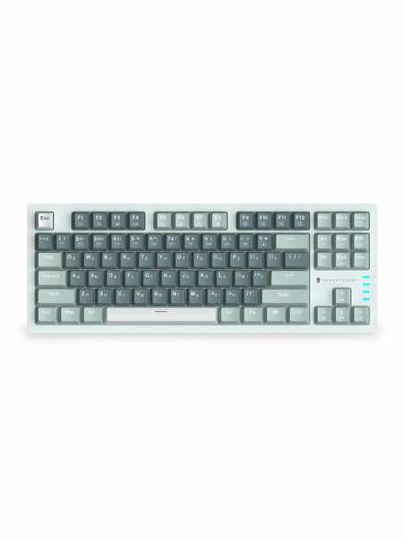 Игровая клавиатура Thunderobot K87R Sage Green (JT00FH000RU) - модель механического типа, которая обладает стандартной раскладкой - англоязычной и русскоязычной, что упрощает набор текста. Конструкция выполнена из прочного, надежного пластика. Устройство обладает 87 клавишами. • Встроенная RGB-подсветка Обеспечивает максимальное удобство во время игры/работы ночью. • Дополнительный набор кейкапов Рассчитан для персонализации и кастомизации девайса. • Hot-Swap Обеспечивает быструю и удобную замену свитчей. • RVVP-экранирование провода Способствует улучшению защиты от помех и гарантирует бесперебойную передачу команд игроками. • Никелированный USB-разъем Предотвращает окисление и уменьшает вероятность искажений во время передачи сигнала. Подключение клавиатуры к ПК производится посредством порта USB 2.0. Длина кабеля равна 1,5 м. Сила нажатия на клавиши достигает 45 г.