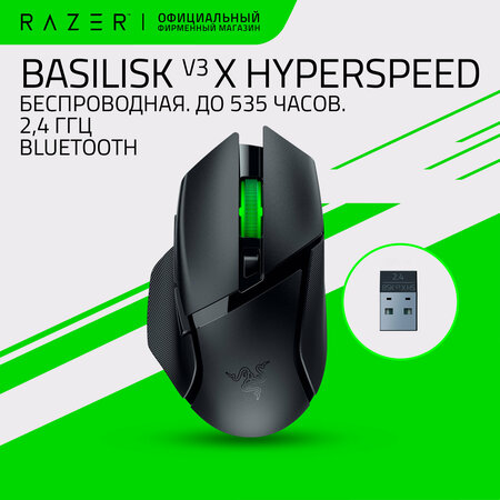 С Razer Basilisk V3 X HyperSpeed нет никаких ограничений в выборе стиля игры. Вооруженный 9 программируемыми элементами управления, двухрежимным беспроводным подключением и настраиваемой подсветкой Razer Chroma™ RGB, он создан подчиняться только одному хозяину — вам.