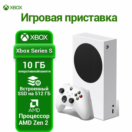 Игровая консоль Microsoft Xbox Series S рассчитана на использование игр, загружаемых из цифровой библиотеки. Разработчиками предусмотрена возможность хранения всех необходимых пользователю данных в облачном сервисе. Консоль подключается к Интернету с помощью Wi-Fi. Быстродействие консоли Microsoft Xbox Series S на высоте: необходимую скорость работы обеспечивают 3.6-гигагерцовый процессор AMD Zen 2, видеоядро AMD RDNA 2, 10 ГБ памяти GDDR6 и 512-гигабайтный твердотельный накопитель. В комплекте – беспроводной геймпад. Собранная в корпусе белого цвета консоль очень компактна: ее габаритные размеры составляют 65x151x275 мм. Масса модели (2 кг) сопоставима с массой компактных ноутбуков.