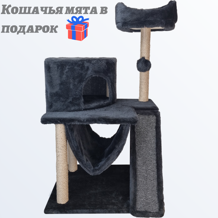Игровой комплекс "Жмурка" с домиком, гамаком и когтеточкой, 60*45*120см, цвет: черный