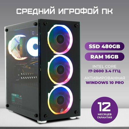 Системный блок в сборе, полностью готов к работе, поставляется с гарантийным талоном Добавляйте в избранное и в корзину, сравнивайте с другими нашими игровыми ПК Мощный системный блок для вашего игрового компьютера от TRADECOMPUTERS – это стильный и функциональный вариант для геймеров. Корпус выполнен в оригинальном дизайне из стекла и стали со специальной яркой RGB подсветкой от TREIDCOMPUTERS, перманентно светящейся при работе. Включается системный блок быстро, между нажатием кнопки и началом работы системы – всего несколько секунд. Реагирует на команды быстро, вы не столкнетесь с раздражающим зависанием системы. Мы заботимся о вашем комфорте: лицензионный WINDOWS уже установлен и готов к работе, а в комплекте с блоком уже идет подходящий провод питания. Вместе с покупкой вы получаете отличный VIP– сервис: личного сервис менеджера TREIDCOMPUTERS, который мгновенно ответит на любой вопрос, гарантированное решение возникающих проблем за один день Технические характеристики: • Процессор: intel Core i7 2600 3.4 Ghz • Блок питания: 600 ватт • Оперативная память: форм-фактор Dimm, размер 16 gb Ddr3, частота 1600 MHz • SSD : 2.5 дюйма, 480 gb объём, SATA • Видеокарта: дискретнаяNVIDIA GeForce GTX 1030 4 Gb • Операционная система: Windows 10 Pro • Материнская плата: Socket 1155, Чипсет H61 • Видеовыходы: DVI - 1 шт / HDMI - 1 шт USB: 2.0 - 4 шт / 3.0 - 2 шт Комплектация ПК (персональный компьютер):