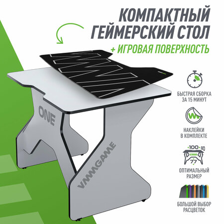 Игровой компьютерный стол VMMGAME ONE — это компактное и оптимальное по вместительности решение для небольшой комнаты или помещения с ограниченным пространством для игрового/рабочего места. Благодаря эргономичной форме столешницы и внушительной глубине, пользователь с легкостью разместит стандартный набор для работы и гейминга: монитор, наушники и микрофон, клавиатуру, мышь и даже небольшую аудио систему. Вырез в передней части столешницы позволит сделать игровой или рабочий процесс более комфортным и продолжительным, поскольку руки не устают и не затекают, удобно располагаясь на поверхности стола. Вырез на задней части столешницы позволит удобно провести провода от монитора и компьютерной периферии к системному блоку. Стол обладает компактной метровой столешницей, что позволит удобно расположиться даже в небольшое помещении, сохраняя при этом привычный набор необходимых инструментов для работы и гейминга. Стол ONE выполнен из высококачественного ЛДСП толщиной 16мм, а края защищены ПВХ кромкой. Поверхность стола легко очищается от загрязнений и следов эксплуатации без использования специальных средств. Регулируемые по высоте ножки позволят компенсировать неровности пола, а надежная и прочная конструкция стола гарантирует высокую устойчивость. Наличие разнообразных цветовых решений позволит вписать стол в любой интерьер. Яркая ПВХ кромка имеет насыщенные цвета и создает важный акцент на рабочем или игровом месте, а классические цвета гармонично впишутся даже в самый консервативный дизайн помещения. УНИКАЛЬНО! В комплект к данному столу: VMMGAME MINI MAT – это универсальная игровая поверхность для линейки компьютерных столов ONE, обеспечивающая комфорт во время игры и позволяющая геймерам использовать свободное пространство более эффективно. Мягкая, эластичная структура существенно улучшает трекинг как для лазерных, так и для оптических сенсоров, дает возможность быстрее реагировать на происходящее во время работы или игры. Поверхность покрывает рабочую зону в области, где обычно располагается клавиатура и компьютерная мышь, и в точности повторяет геометрию передней части столов VMMGAME ONE. Рабочая поверхность VMMGAME MINI MAT отличается минимальной толщиной, которая составляет 4 мм. Позволяет полностью сливаться с поверхностью стола, создавая дополнительный комфорт во время игр и работы. Прорезиненное основание плотно прилегает к столу.