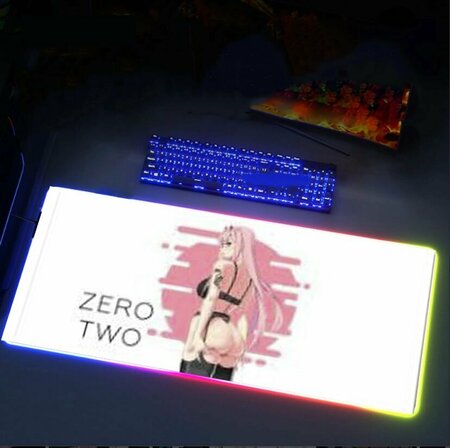 Игровой коврик для мыши 900 х 400 х 4 мм с RGB подсветкой, в стиле Аниме Любимый во Франксе №28, много режимов, коврик для клавиатуры и мыши, Белый
