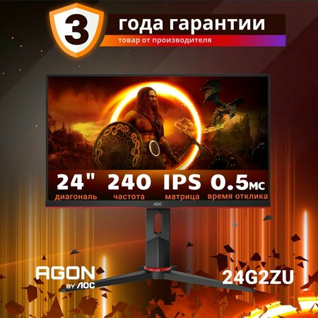 Монитор AOC 24G2ZU обеспечивает игре плавность и отсутствие задержек благодаря частоте обновления 240 Гц, времени отклика 0,5 мс и низкой задержке ввода. Он обладает функцией регулировки высоты и поворота экрана, а также совместим с FreeSync Premium и G-Sync, что позволяет максимально адаптировать игровой процесс для пользователя. 240HZ частота обновления 240 Гц полностью раскрывает возможности новейших графических процессоров, гарантируя беспрецедентную плавность изображения на экране. Благодаря резкости каждой детали и кристальной четкости каждого движения, почувствуйте как ваши реакции преобразуются в непосредственные действия и улучшают игру. 0.5MS время отклика Время отклика равное 0.5 мс означает скорость без размытия изображения для полноценного наслаждения игрой. Скоростное движения и драматичные переходы будут плавными без раздражающих задержек изображения. Выберите правильный путь к успеху, не позволяйте медленному монитору остановить вас. минимум рамок для непревзойденного боевого поста Расширьте свое поле обзора с несколькими мониторами. Узкие границы и безрамная конструкция обеспечивает минимум рамок для непревзойденного боевого поста. FREESYNC PREMIUM Наслаждайтесь лучшим качеством изображения даже в динамичных играх. Технология FreeSync Premium от AMD производит синхронизацию частот обновления графического процессора и монитора, делая игровой процесс более плавным и захватывающим, сохраняя при этом высокую производительность. Благодаря поддержке частот обновления не ниже 120 Гц, технология FreeSync Premium от AMD уменьшает размытость и повышает резкость изображения, обеспечивая его более реалистичное восприятие. Функция LFC устраняет зависания в случаях, когда частота смены кадров становится ниже частоты обновления. регулируемая ПО высоте подставка Мы заботимся о вашем благополучии. Именно поэтому данный монитор предлагает возможности настройки по высоте, которые помогают найти идеальное положение для работы, игры или просмотра видео. Адаптация монитора AOC в соответствии с вашими нуждами не только помогает снизить усталость, но и помогает сохранить здоровье. Наконец, он позволяет вам и вашей команде достичь лучших результатов в любом деле. встроенные динамики Встроенные динамики позволяют легко общаться с семьей, друзьями и коллегами. А во время игры, просмотра фильмов и прослушивания музыки вы сможете насладиться качественным звуком без необходимости надоедливого подключения внешних динамиков. низкая задержка ввода Раскройте потенциал своих реакций в режиме низкой задержки ввода (Low Input Lag) от AOC. Забудьте украшательства: в этом режиме все ресурсы монитора перебрасываются на обработку отклика, что обеспечивает абсолютное преимущество в нужный момент при спуске курса слабым нажатием. режим 6 ИГР Переводите свой дисплей в нужный игровой режим одним нажатием кнопки. Переключайтесь между предустановленными игровыми режимами для FPS, гонок или RTS, подбирайте собственные идеальные настройки и сохраняйте их. Клавиатура настроек AOC позволяет быстро и легко переключать профили и регулировать параметры. AOC GAME COLOR И SHADOW CONTROL Выведите битву из тени благодаря функциям AOC Shadow Control и AOC Game Color. Отрегулируйте уровень серого, чтобы повысить детализацию изображения, осветлите темные области отдельно или полностью затемните их, не влияя на остальну