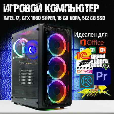 Настольный игровой компьютер. Мощный 12/24 ядерный ПК для игр, программ, интернета и обработки видео звука фото. Системный блок для работы, дома, учебы, школы, универа. Компьютер собран в хорошо продуваемом игровом корпусе с RGB вентиляторами, вентилятор охлаждения цп башенного типа, с подсветкой. Топовый серверный процессор 12 ядер 24 потока, Intel Xeon E5-2670 v3 (на 3.7% мощнее Core i7-9700, лучшего в линейке cpu i3, i5, i7). Надежная материнская плата X99 LGA 2011-3. Игровая видеокарта в отличном состоянии обслуженная проверена и пропротестирована NVidia GeForce GTX 1660 SUPER с 6 Gb видеопамяти (тянет ВСЕ игры на высоких и максимальных настройках в Full HD (1920x1080) разрешении, а так же можно играть и в 2К, 4К). Установленная оперативная память 16 Gb DDR4 для быстродействия при работе в многозадачном режиме. Компьютер оснащен быстрым накопителем 512 Гб SSD объема памяти для хранения данных. Комплектующие можно модернизировать в будущем. Есть всевозможные разъемы USB 2.0, 3.0, 3,5 jack, vga, hdmi для подключения периферии (монитора, телевизора, клавиатуры, мышки, наушники, колонки, микрофон, аудио динамики, мышь). Предустановлена и настроена операционная система Windows 10.
