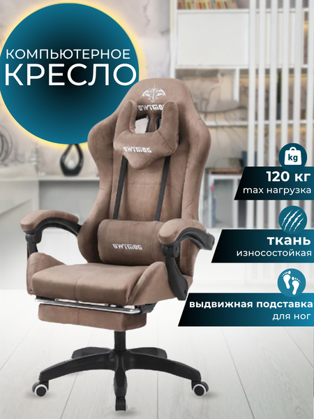 Игровое компьютерное кресло из велюра с подставкой для ног (коричневое) - это уникальное сочетание комфорта и функциональности.