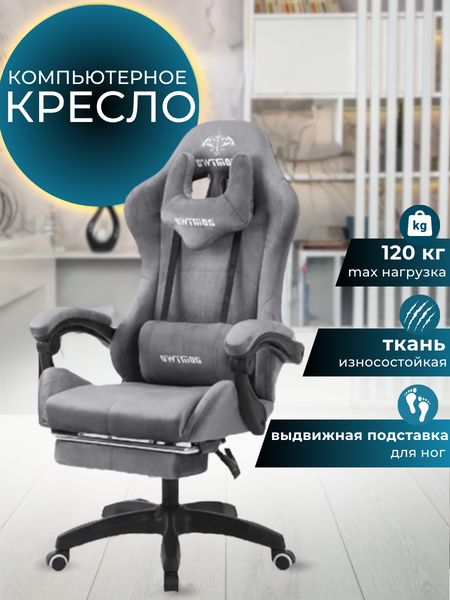 Игровое компьютерное кресло из велюра с подставкой для ног (серое)