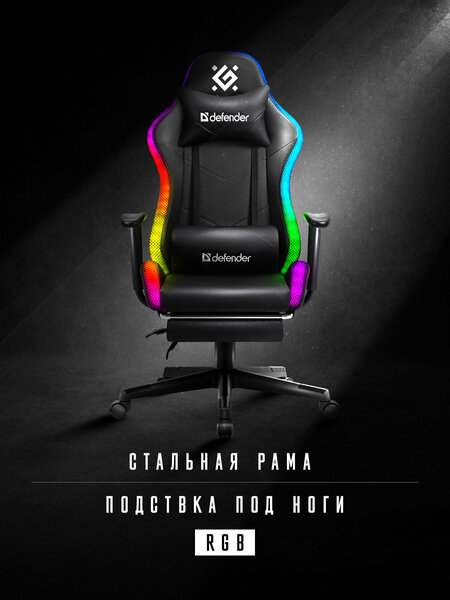 Название: Игровое компьютерное кресло Defender Watcher с RGB подсветкой и пультом, полиуретаном, 2 подушками и подставкой для ног. Игровое кресло Defender Watcher - это идеальное решение для тех, кто ищет комфорт и удобство во время игр, работы или просто отдыха. Оно имеет эргономичную форму и спортивный дизайн, который подойдет для любого интерьера. Одной из главных особенностей этого кресла является его мягкая и прочная экокожа, которая позволяет не испытывать дискомфорт при любых температурах. Благодаря специальному механизму раскачивания, вы сможете успокоить нервную систему, снизить нагрузку на межпозвонковые диски и расслабиться. Кроме того, кресло имеет регулировку высоты, что позволяет настроить его под любой рост и условия использования. А массивное металлическое основание гарантирует повышенную устойчивость и поддержку повышенных нагрузок. Также в комплекте с креслом идут 2 подушки для дополнительного комфорта и подставка для ног, которая поможет сохранить правильную осанку и снизить нагрузку на ноги. В целом, игровое кресло Defender Watcher предлагает не только комфорт и удобство, но и заботу о вашем здоровье. Оно идеально подходит для домашнего и офисного использования, а также для любителей игр и работы за компьютером. Наличие кармана на задней спинке кресла для хранения АКБ, в котором спрятан USB-кабель для включения подсветки. Длина встроенного кабеля 0,8 м (+- 5%). В продаже также имеются защитные коврики под кресло: 102192589664, 103189271595, 102662108889