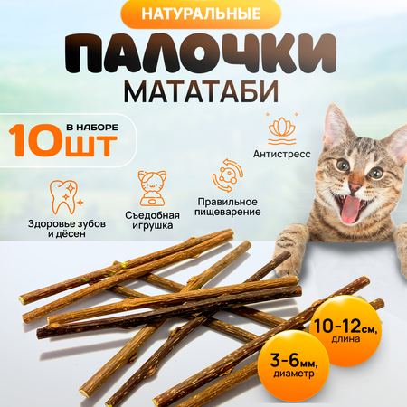 Игрушка для кошек, палочки Мататаби для чистки зубов котикам (10 штук в наборе)