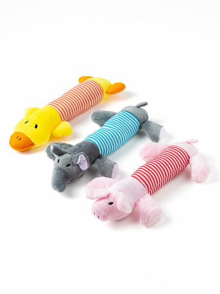 Игрушка пищалка для собак Уточка, свинка, слон предназначена для маленьких и средних пород собак, а также для кошек. Мягкая игрушка выполнена из прочной и безопасной ткани, которая не вызывает аллергических реакций у животных. Эта игрушка станет прекрасным развлечением для вашего питомца. Она имеет яркий дизайн, привлекательный для собак и кошек. Благодаря встроенной пищалке, игрушка издает звук, который привлекает внимание и стимулирует игровую активность животного. Игрушка пищалка подходит как для игры в помещении, так и на открытом воздухе. Она легко моется и сохраняет свой яркий внешний вид даже после многократного использования. Эта игрушка также подходит для маленьких щенков мелких пород. Она помогает развивать координацию движений, укреплять зубы и челюсти животного. Приобретая игрушку пищалку , вы дарите своему питомцу радость и заботу. Эта игрушка станет незаменимым аксессуаром для вашего пушистого друга.