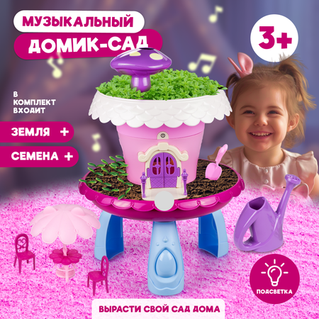 Набор Вальс цветов Домик-вазон розовый с мебелью и садовым инвентарем создан специально для детей. Ведь так интересно, посадив крошечное семечко в землю, наблюдать за тем, как оно просыпается, набухает, выпускает первый росток и вот уже готовый садик радует ребенка каждый день. Всё очень просто: необходимо залить водой брикет с землей, дождаться пока земля набухнет, разложить её по газонам и разрыхлить. Затем посеять семена. Через несколько дней уже можно будет наблюдать, как появляются первые росточки. Домик-сад оснащён прекрасной и чарующей музыкой П. И. Чайковского Вальс цветов и подсветкой В комплект входят: -домик в форме цветочного вазона -садовая мебель - садовый инструмент - 2 брикета земли - семена - 3 батарейки AG13 - инструкция