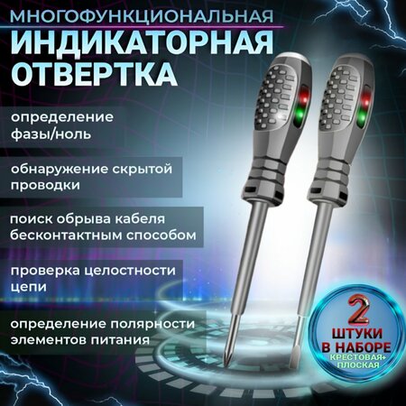 Представляем вашему вниманию абсолютную новинку этого года -индикаторная отвертка 5 в 1, индикатор напряжения, отвертка-тестер. Это удобный и незаменимый инструмент для всех, кто работает с электричеством или проводит ремонтные работы в доме. Наша индикаторная отвертка станет незаменимым помощником в вашем доме или мастерской благодаря своей многофункциональности. Она отлично справляется с такими функциями как: -определение фазы/ноль -обнаружение проводки под напряжением -поиск обрыва кабеля бесконтактным способом -проверка целостности цепи -определение полярности элементов питания Важными преимуществами отвёртки также являются -диэлектрический корпус -работа от батареек -магнитная бита -новейший чип -два встроенных светодиода Наша индикаторная отвертка - незаменимый инструмент для профессионалов и любителей. Обладая множеством функций и простотой использования, она сэкономит ваше время и силы при проведении ремонтных работ. Позаботьтесь о своей безопасности уже сейчас и приобретите надежный и многофункциональный инструмент!