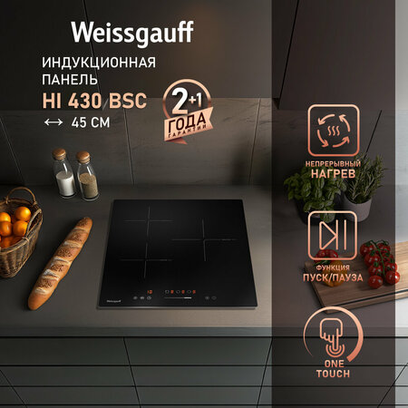 Индукционная панель Weissgauff с особым дизайном конфорок Cross-Zone и непрерывным нагревом выводит на новый уровень понимание того, насколько эффективной может быть компактная индукционная варочная поверхность шириной всего 45 см! Серия PREMIUM создана Weissgauff, чтобы удовлетворить самые взыскательные запросы наших наиболее требовательных клиентов. Бесспорно высшее качество, расширенная функциональность и богатая комплектация, улучшенные показатели и доведенный до совершенства дизайн – все это вы найдете в моделях данной серии, воплощающих самые смелые мечты в реальность. Прикоснитесь к поистине легендарному уровню исполнения бытовой техники Weissgauff с моделями PREMIUM! Индукционная технология нагрева, при которой повышение температуры происходит непосредственно в дне самой посуды, позволит готовить гораздо быстрее, расходовать меньше электроэнергии и быть уверенным в том, что "убежавшая" еда не пригорит к поверхности: ведь сама она не раскаляется. Технология непрерывного нагрева является наиболее передовой и современной опцией работы индукционных панелей, она позволяет обеспечить более чувствительное управление температурой приготавливаемой пищи, что особенно важно для блюд, требовательных к поддержанию постоянной интенсивности нагрева. Инверторный блок с гарантией 10 лет не только обеспечивает высокую эффективность, пониженный уровень шума во время работы, а также оптимизированное энергопотребление, но и позволяет реализовать легендарную технологию непрерывного нагрева, которой так примечательная эта модель! Ширина 45 см, позволяет использовать компактность данной модели как ещё одно из её преимуществ, давая возможность разместить индукционную панель даже на самых малогабаритных кухнях. Сенсорное управление One Touch, современное и оперативно реагирующее на ваши прикосновения с первого раза, даже в том случае, если руки холодные или влажные. Блок управления-слайдер, позволяющий всего в одно касание выставить необходимый вам уровень нагрева любой из конфорок и делающий процесс управления панелью значительно более быстрым и легким. Опция Boost это удобная функция, позволяющая направить весь потенциал индукционной панели в одну рабочую зону и, тем самым, значительно увеличить эффективность и скорость нагрева Функция Пуск/ Пауза будет особенно удобна, если вас отвлек телефонный звонок или другие дела: всего лишь нажмите на эту кнопку, чтобы поставить работу варочной панели на паузу, а затем нажмите еще раз, чтобы продолжить нагрев со всеми выбранными настройками, и варочная панель вернется к заданной мощности! 9 уровней мощности - с ними вы сможете подобрать подходящую температуру для приготовления практически любого блюда. Таймер до 99 минут дает вам возможность запрограммировать время выключения любой конфорки, с точностью до минуты Максимальная мощность подключения 5600 Вт - делает данную модель по-настоящему мощной, позволяя вам готовить на всех трех конфорках одновременно, без потерь эффективности каждой рабочей зоны. Защитное автоотключение - это дополнительный уровень безопасности, который гарантирует высокую степень защиты для вас и вашего дома, обеспечивая самостоятельное отключение конфорки. Индикация остаточного тепла, сообщающая вам о том, когда прикасаться к конфорке уже безопасно, а когда - еще нет, ведь в те