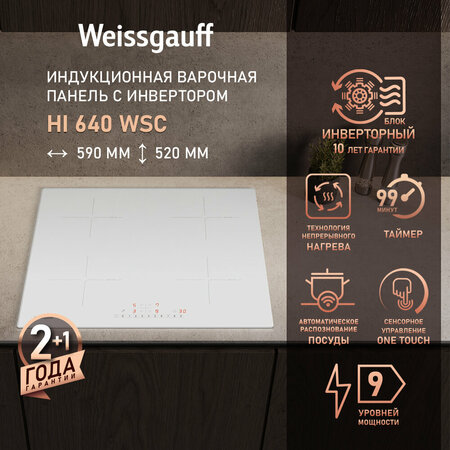 Индукционная варочная панель с инвертором и слайдером Weissgauff HI 640 WSC , 59 см ширина, таймер
