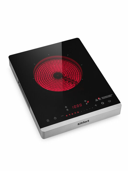 Инфракрасная плита KT-146 выполнена в пластиковом корпусе с рабочей поверхностью из стеклокерамики и обладает мощностью до 2000 Вт! В отличие от индукционных плит, инфракрасная плита не имеет импульсного режима. Нагрев происходит постоянно даже на самых минимальных мощностях. С помощью сенсорного слайдера установите нужный нагрев до 2000 Вт, температуру до 500°C и таймер до 24 часов. Функция блокировки кнопок сохранит заданные вами настройки, а индикатор «Горячо» предупредит вас, когда поверхность плиты сильно нагрета. Для инфракрасной плиты Kitfort KT-146 подходит практическая любая посуда, однако рекомендуется использовать посуду с плоским дном. Плита выдерживает вес не более 10 кг.