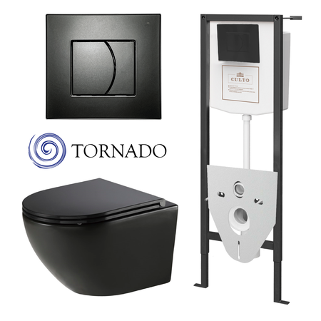 Инсталляция с подвесным унитазом CULTO TOR ANDY PRO собрал в себе все самое лучшее! Плавные линии, запоминающийся дизайн, улучшенная система смыва Торнадо - вот отличительные особенности чаши унитаза ANDY PRO. Подвесной унитаз CULTO ANDY PRO — это идеальное решение для современного дизайна вашей ванной комнаты. Его безободковая конструкция обеспечивает легкость в уходе и внесет нотку стиля в интерьер. Унитаз оснащен уникальной системой торнадо, которая обеспечивает высокоэффективный слив и экономию воды, что делает его не только эстетично привлекательным, но и экологичным выбором. Одной из главных особенностей данной модели является сиденье с микролифтом, что гарантирует мягкое и бесшумное закрытие. Такой механизм позволяет избежать повреждений и продлить срок службы унитаза. Дизайн в черном цвете придаст вашей ванной комнате утончённый и современный вид, подчеркивая индивидуальность и вкус владельца. Благодаря подвесной конструкции, унитаз освобождает пространство на полу, что делает его подходящим выбором для небольших помещений. Установка унитаза на стену облегчит уборку и создаст визуальный эффект легкости. Такой тип сантехники идеально подходит для создания современного стиля, а также облегчает доступ к напольным покрытиям. Этот подвесной унитаз станет не только функциональным элементом, но и стильным акцентом в вашем санузле. Он сочетает в себе передовые технологии и ухоженный дизайн, предлагая вам надежное решение для вашего комфорта. Унитаз CULTO TOR ANDY PRO — это не только предмет первой необходимости, но и важный элемент общего стиля вашего дома. Выберите этот унитаз, если хотите обновить вашу ванную комнату, сделать её более современной и комфортной. Подвесная конструкция, безободковый дизайн и система торнадо делают эту модель превосходным вариантом для тех, кто ценит качество и минимализм в интерьере. Металлическая самонесущая рама инсталляции весом 12,5 кг – покрыта порошковым напылением, толщина металлического профиля – 30×40 мм, оцинкованные стальные опоры рамы с регулировкой высоты, крепления чаши унитаза от 32 до 56 см, универсальные крепления, с возможностью присоединения к неровным и боковым поверхностям, которые входят в заводскую комплектацию изделия. Система инсталляции выдерживает нагрузку до 400 кг. В комплект входит панель смыва, монтажный комплект креплений, монтажная рама (инсталляция) и звукоизоляционный комплект, подвесной унитаз, сиденье с микролифтом. Гарантия: 25 лет фарфор, 10 лет рама, 3 года арматура.