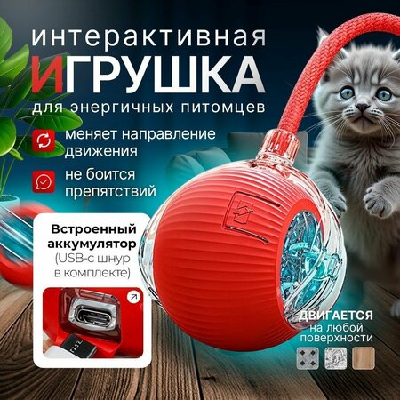 Важно: 1. Перед тем как включить игрушку, ее необходимо поставить на зарядку. 2. игрушка не будет заряжаться от высокомощных блоков питания, используйте блоки максимальной мощности В 20 вт 3. Мячика хватает на 180 минут активной игры. 4. У мячика 3 режима: внимательно ознакомьтесь с каждым! Представляем вашему вниманию инновационную игрушку для кошек — интерактивный умный мячик. Этот уникальный продукт создан специально для развлечения и развития домашних питомцев. Он представляет собой автоматический мячик, который способен двигаться в разных направлениях, что делает его идеальным выбором для игр с кошками и собаками мелких пород. Умный мячик изготовлен из высококачественных материалов — силиконовой резины, которая абсолютно безопасна для животных. Эта игрушка поможет вашим питомцам не скучать, пробудит в них охотничий инстинкт и подарит вам больше свободного времени, так как отвлечёт их от порчи мебели и царапания ваших рук. Благодаря своей способности автоматически избегать препятствия, умный мячик подходит не только для кошек, но и для мелких и средних собак. Перед первым использованием игрушки необходимо полностью зарядить аккумулятор. Во время работы мячика будет гореть световой индикатор.