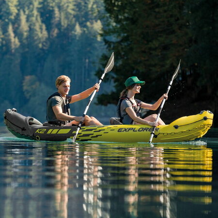 Двухместная надувная байдарка Intex 68307 Explorer К2 предназначена для озер и небыстрых рек. Обтекаемая форма корпуса способствует легкому скольжению, а надувной пол - дополнительной плавучести и безопасности.