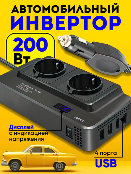 Преобразователь напряжения в машину оснащен четырьмя разъемами USB, что позволяет одновременно заряжать несколько устройств. Встроенный дисплей отображает информацию о состоянии аккумулятора и работе инвертора в автомобиль. Защита от перенапряжения перегрева перегрузки и короткого замыкания обеспечивает безопасность использования инвертора. Активное охлаждение гарантирует стабильную работу устройства даже при высоких нагрузках.