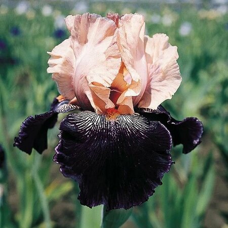 Ирис высокорослый бородатый сорт Уэнч ( Wench ) - превосходные цветки с розовыми стандартами и сливово-фиолетовыми фолами с розовым контуром и розовыми линиями вокруг мандариновой бородки. Красивоцветущее, ароматное, зимостойкое, свето и влаголюбивое.