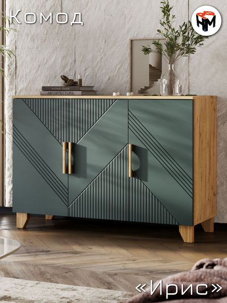 Ирис Комод 1200 (Зеленый, дуб крафт) – стильная и функциональная мебель, которая станет ключевым элементом интерьера в любом помещении. Произведенный в России, комод объединяет в себе прочность и долговечность благодаря качественным материалам: ЛДСП для корпуса и МДФ для фасада. Его современный стиль лофт придает комоду особый шарм и позволяет легко вписаться в любые интерьеры. Компактные размеры 120,2 см в ширину, 83,6 см в высоту и 44,5 см в глубину делают его идеальным для небольших пространств. Тумбочка «Ирис» внутри оснащена тремя полками, на которых можно разместить всё необходимое: от постельного белья до книг и игрушек. Особенность комода — это скрытые полки за распашными дверцами, которые могут служить подставкой для телевизора или декоративным элементом. Комод на ножках облегчает уборку и поддерживает чистоту в комнате. К этому комоду можно добавить кровать и шкаф, чтобы создать уютную спальню или стильную гостиную. Выбирая комод «Ирис», вы останетесь довольны покупкой.