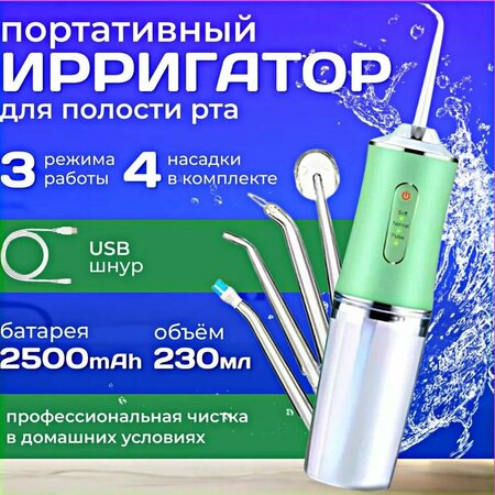 Ирригатор портативный для полости рта - идеальное решение для полноценного ухода за зубами, деснами и языком в любом месте, где бы вы ни находились. Набор включает в себя 4 насадки и 3 скорости, обеспечивая всей семье возможность пользоваться ирригатором. Зарядное устройство, гарантия и подробная инструкция на русском языке прилагаются к комплекту. В отличие от стационарных аппаратов, портативный ирригатор обладает несравненными преимуществами. Удобство использования и легкая переносимость позволяют поддерживать идеальное состояние полости рта в любых условиях. С ним вы сможете предотвратить образование налета на зубах и обеспечить надежную гигиену ротовой полости. Больше не нужно тратить деньги и время на посещения стоматолога для качественной профилактики полости рта. Ирригатор портативный позволит вам самостоятельно проводить процедуры ухода, достигая профессионального уровня чистоты и белизны зубов. Безопасность и эффективность использования гарантированы. Сделайте заботу о здоровье полости рта удобнее и эффективнее - приобретите портативный ирригатор уже сейчас. Наслаждайтесь свежестью дыхания и уверенностью в своей улыбке без лишних хлопот и походов к специалистам.