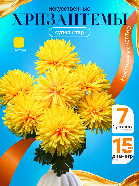 Искусственные цветы хризантемы желтого цвета станут идеальным дополнением для вашего интерьера. Эти долговечные цветы не требуют ухода, что делает их отличным выбором для занятых людей, желающих добавить яркие акценты в свой дом или офис. Яркие желтые хризантемы привнесут атмосферу радости и уюта, а также прекрасно подойдут для оформления праздничных мероприятий. важно! При транспортировке цветы могут немного помяться, но это легко исправить! Достаточно расправить руками, для большей пышности можно обработать цветы паром в течении нескольких секунд. Веточки цветов, высотой 60 см, имеют проволочную основу, покрытую пластиком, что позволяет придавать букетам желаемый объем, направлять ветки в нужную сторону, делать букеты более раскрытыми или наоборот, все ветки соединяются в одну плотную ножку. Бутоны выполнены из ткани, листья из пластика. Цветы отлично смотрятся, достаточно долговечны в использовании, хорошо переносят хранение на улице и подходят для ритуальных целей. банком предлагает приобрести и другие товары. Переходите в наш магазин, где представлен огромный выбор цветов и окружите себя изящными аксессуарами и создайте неповторимый уютный домашний дизайн. Не упустите возможность преобразить свое пространство! Искусственные цветы хризантемы – это отличный способ добавить стиль и цвет в ваш дом без лишних хлопот. Замечательный выбор как для личного использования, так и для подарков, эти цветы сделают любой праздник особенным.